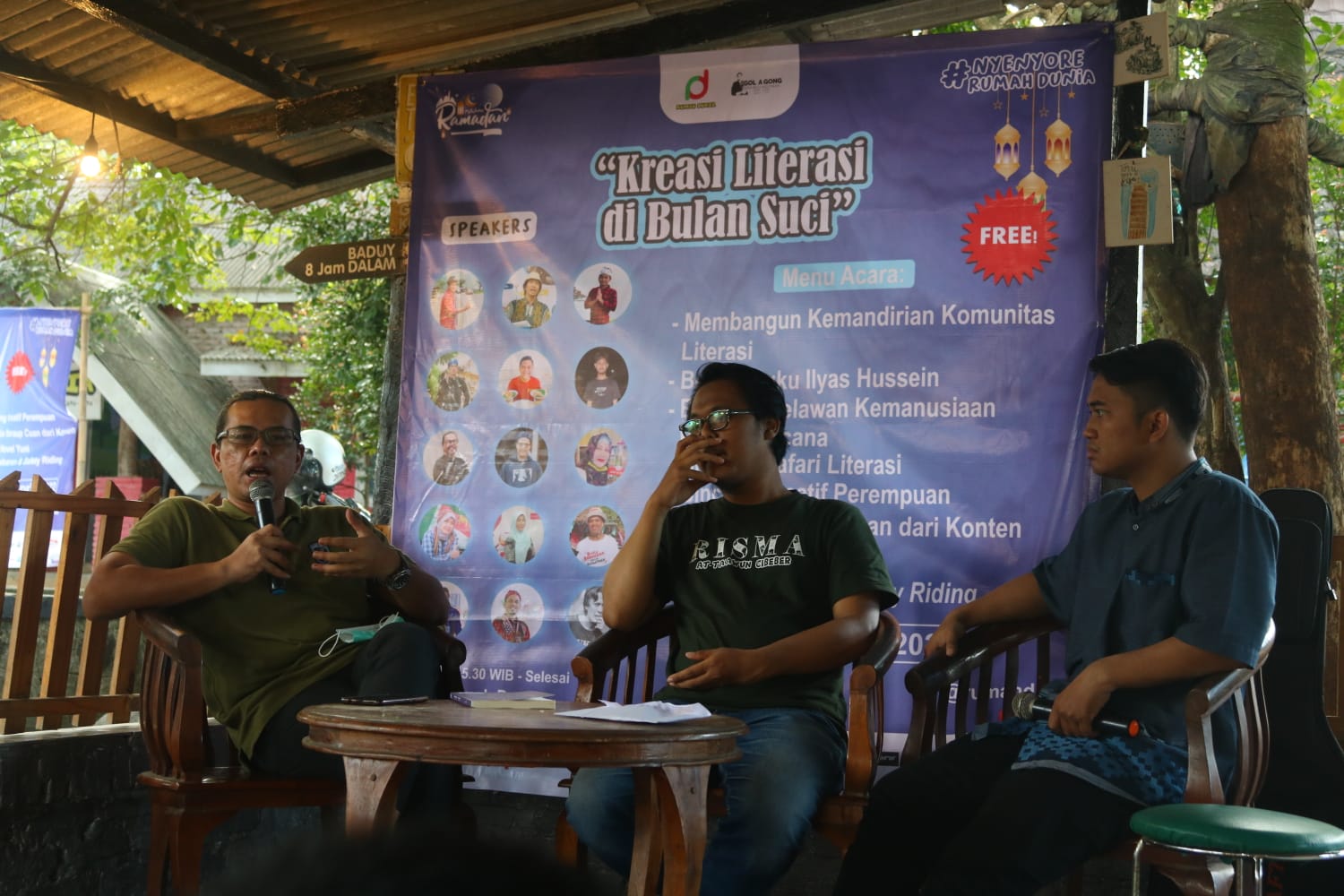 KURUNGBUKA.com, SERANG – Kegiatan Nyenyore & Kado Lebaran di hari terakhir ditutup dengan menu Bedah Buku Novel Yuni. Menghadirkan Ade Ubaidil (Penulis Novel), Firman Venayaksa (Pembedah) & Sanik Radi Fatih sebagai moderator, acara berlangsung dengan khidmat, Sabtu (23/04).