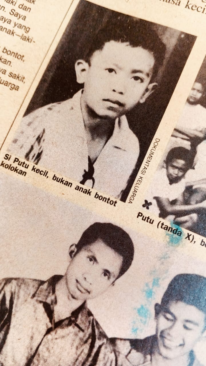 Pengarang yang sering dalam kemujuran. Kita simak saat remajanya: “Di SMP, saya menulis cerpen yang pertama kali dimuat di koran lokal Suluh Indonesia. judunya Etsa. Berasal dari judul kumpulan puisinya Toto Suddarto Bahtiar. Etsa itu nama seorang wanita. Ceritanya tentang seorang yang menyatakan cinta kepada temannya agar ia bersemangat belajar sehingga lulus.” Bila mau mencarinya, cerpen itu dapat ditemukan. Cerpen dapat ditaruh di babak awal kepengarangan saat ada orang yang mau menulis biografi Putu Wijaya seribuan halaman. dulu, Ada buku mengenai dirinya yang diterbitkan Grasindo: tipis dan tidak lengkap. Kita menginginkan yang tebal dan bermutu.