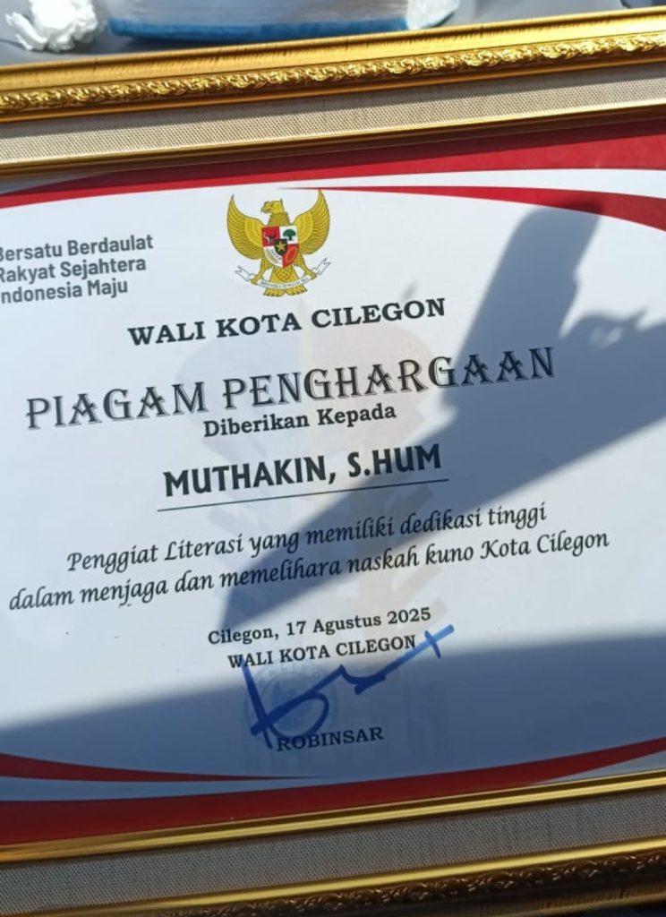 Dalam rangkaian acara, Pemkot Cilegon memberikan penghargaan kepada sejumlah tokoh yang dinilai berjasa di bidangnya masing-masing, seperti budaya, olahraga, kesehatan, dan literasi. Salah satu penerima penghargaan adalah Muthakin, guru MTs Al-Khairiyah Karangtengah, yang dikenal sebagai pegiat literasi dengan fokus pada pelestarian naskah kuno atau manuskrip.