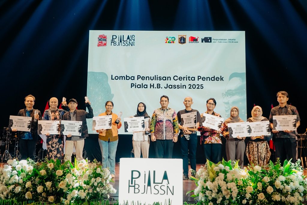 KURUNGBUKA.com, JAKARTA – Malam puncak Festival Sastra H.B. Jassin 2025 di Teater Besar Taman Ismail Marzuki, Sabtu (18/10/2025), menjadi saksi lahirnya para penulis terbaik dari ajang Lomba Penulisan Cerita Pendek Tingkat Internasional Piala H.B. Jassin 2025. Suasana riuh tepuk tangan menggema ketika nama Rini Febriani, guru madrasah asal Jambi, diumumkan sebagai Pemenang Terbaik II. Ia menerima hadiah sebesar Rp13.000.000 dan trofi bergengsi bergambar sastrawan besar H.B. Jassin.