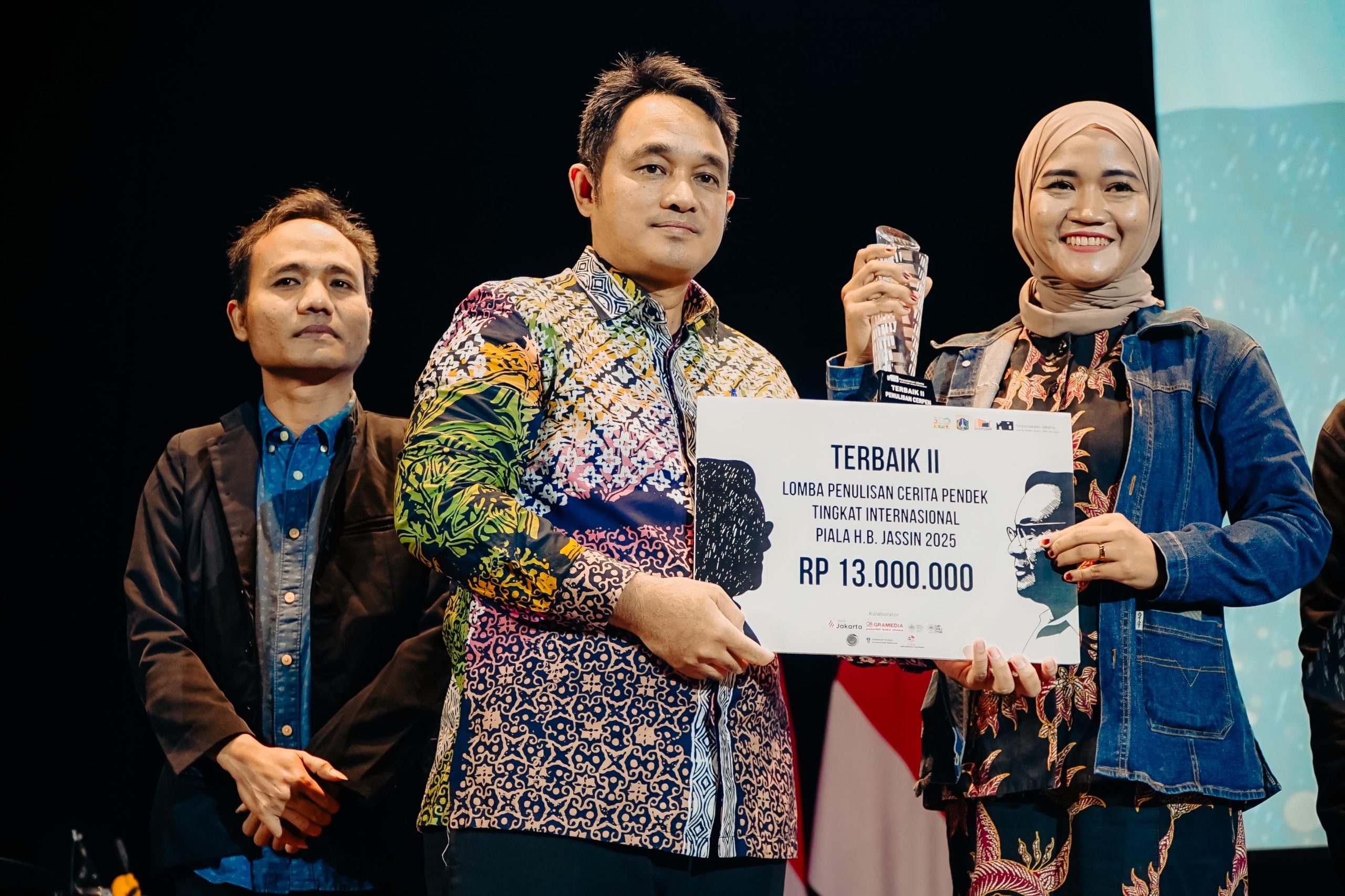 KURUNGBUKA.com, JAKARTA – Malam puncak Festival Sastra H.B. Jassin 2025 di Teater Besar Taman Ismail Marzuki, Sabtu (18/10/2025), menjadi saksi lahirnya para penulis terbaik dari ajang Lomba Penulisan Cerita Pendek Tingkat Internasional Piala H.B. Jassin 2025. Suasana riuh tepuk tangan menggema ketika nama Rini Febriani, guru madrasah asal Jambi, diumumkan sebagai Pemenang Terbaik II. Ia menerima hadiah sebesar Rp13.000.000 dan trofi bergengsi bergambar sastrawan besar H.B. Jassin.