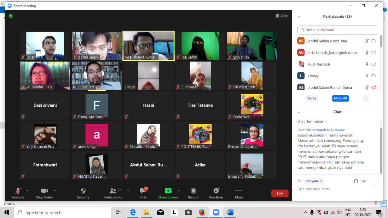 KURUNGBUKA.com, SERANG – Rumah Dunia bekerjasama dengan Kementerian Pendidikan dan Kebudayaan (Kemendikbud) melalui Direktorat Pendidikan Masyarakat dan Pendidikan Khusus menggelar acara Webinar, dengan tema Literasi Digital: Tips dan Trik Membuat Film Pendek, dengan pemateri RG Kedung Kaban (Jumat, 9/10/2020).