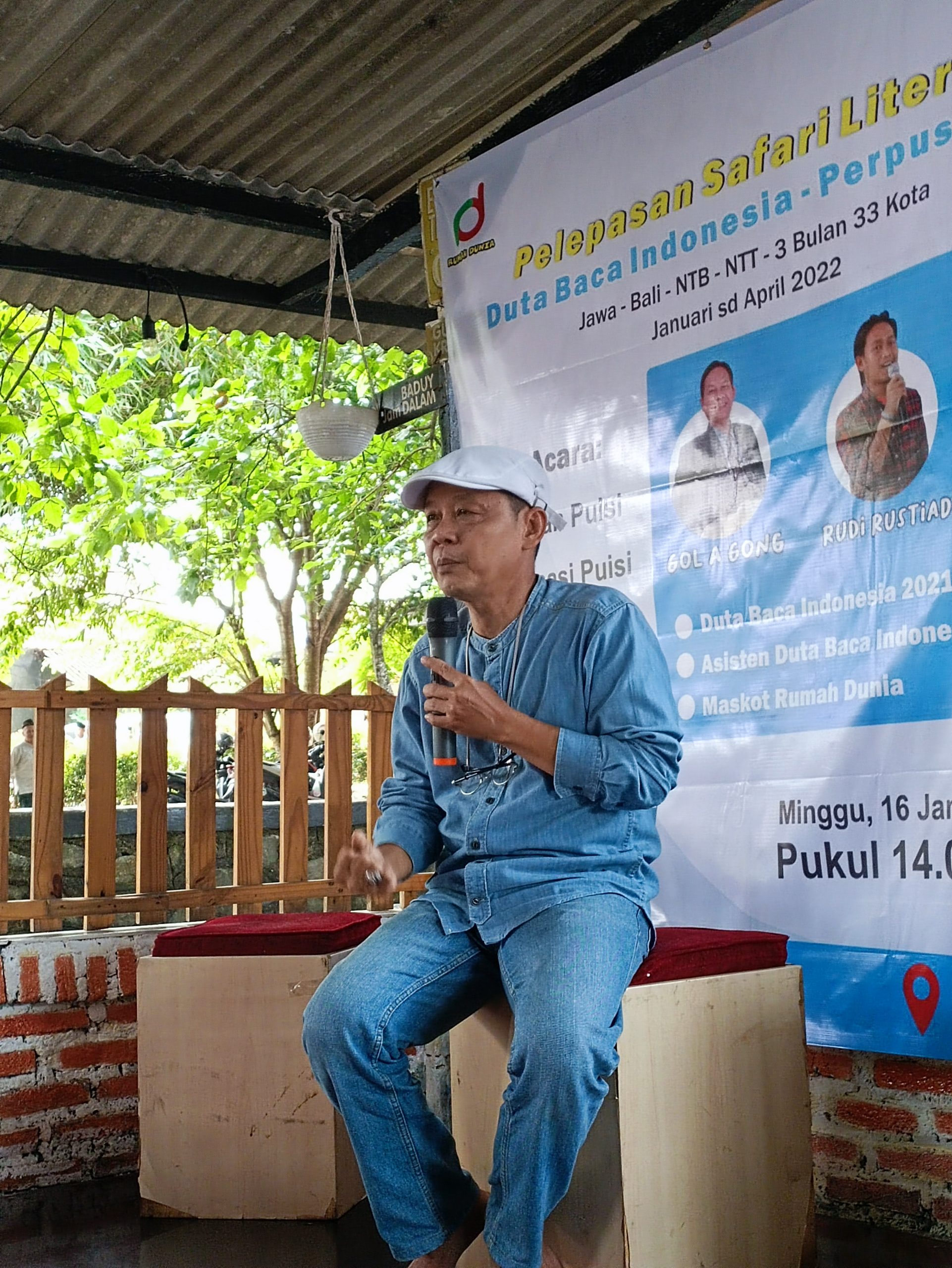 KURUNGBUKA.com, SERANG – Duta Baca Indonesia, Gol A Gong bersama relawan Rumah Dunia (RD) Rudi Rustiadi dan Taufik Hidayatullah melakukan simbolis atau prosesi pelepasan Safari Literasi Duta Baca Indonesia, Minggu (16/1/2022) di Rendezvous Cafe, Ciloang.