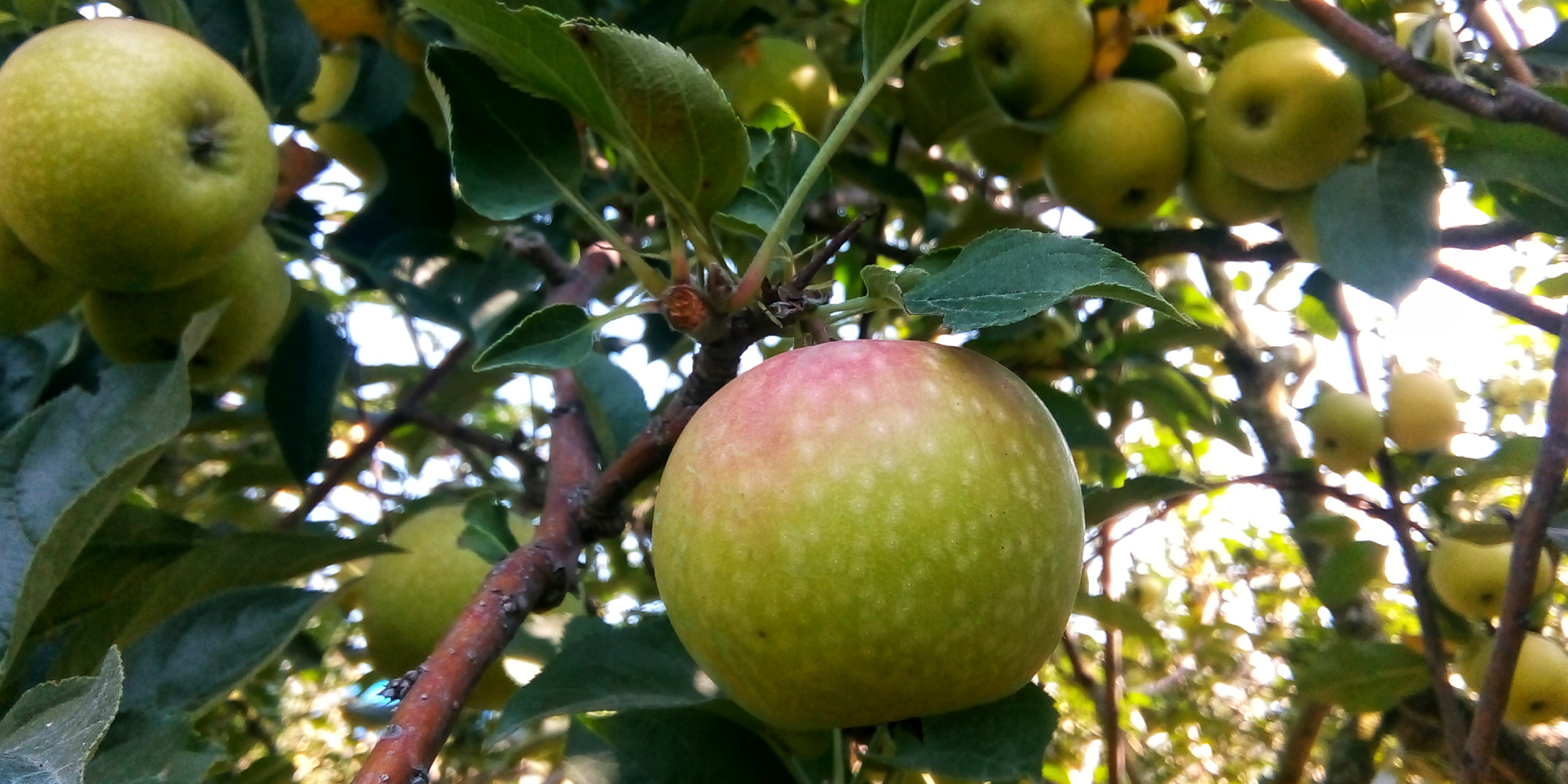 Kebun yang lokasinya di dataran tinggi ini udaranya luar biasa sejuk dan cenderung dingin. Saya baru mencicip dua buah apel dan perut saya sudah terasa keroncongan meminta nasi. Untunglah kakak saya sudah siap dari awal untuk membawa nasi beserta lauk, hanya saja kami lupa membawa tikar. Jadi, kami makan dengan menggunakan sandal sebagai alas duduk. Sensasinya luar biasa sekali, duduk bersila di bawah pohon apel yang berbuah lebat, udara sejuk, pepohonan di mana-mana. Rasanya saya akan sanggup menghabiskan satu bakul nasi. Hehe.